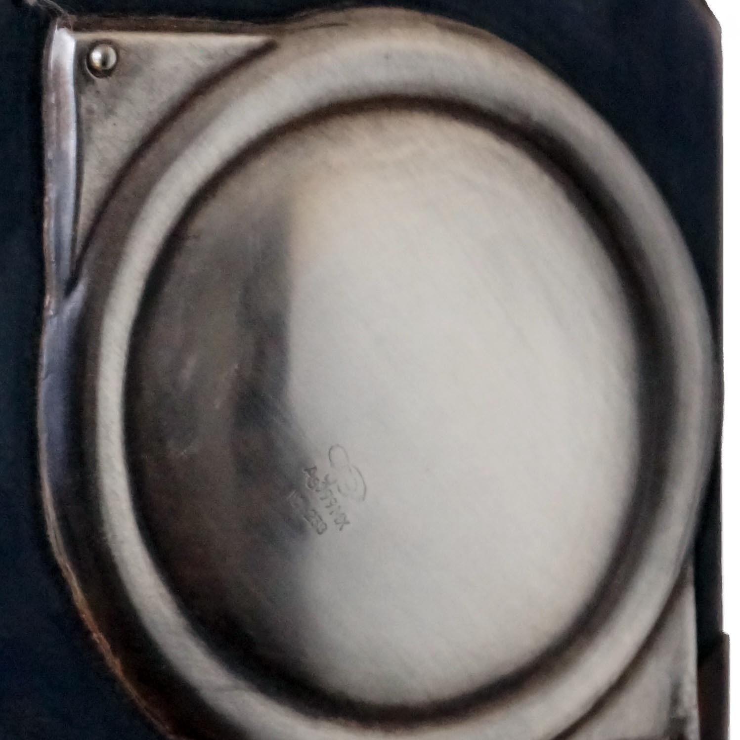 This stunning frame sports a uniquely textured application of a sheet of crinkled copper to create a rich dark background to showcase the gleaming polished copper insets.