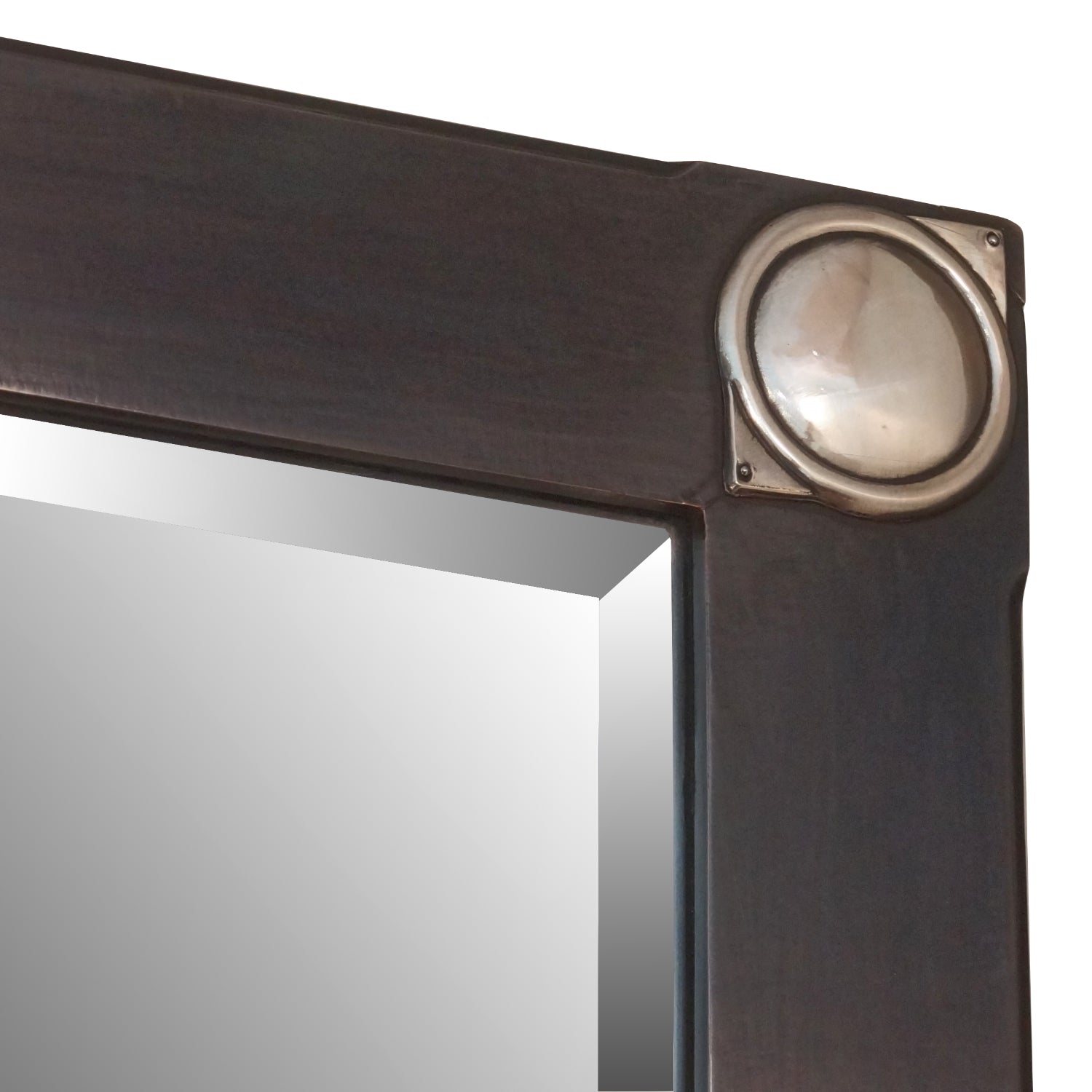 This breathtaking AROS mirror combines the rich dark textured background of burnished copper, highlighted with 2 round medallions of polished copper in opposite corners.